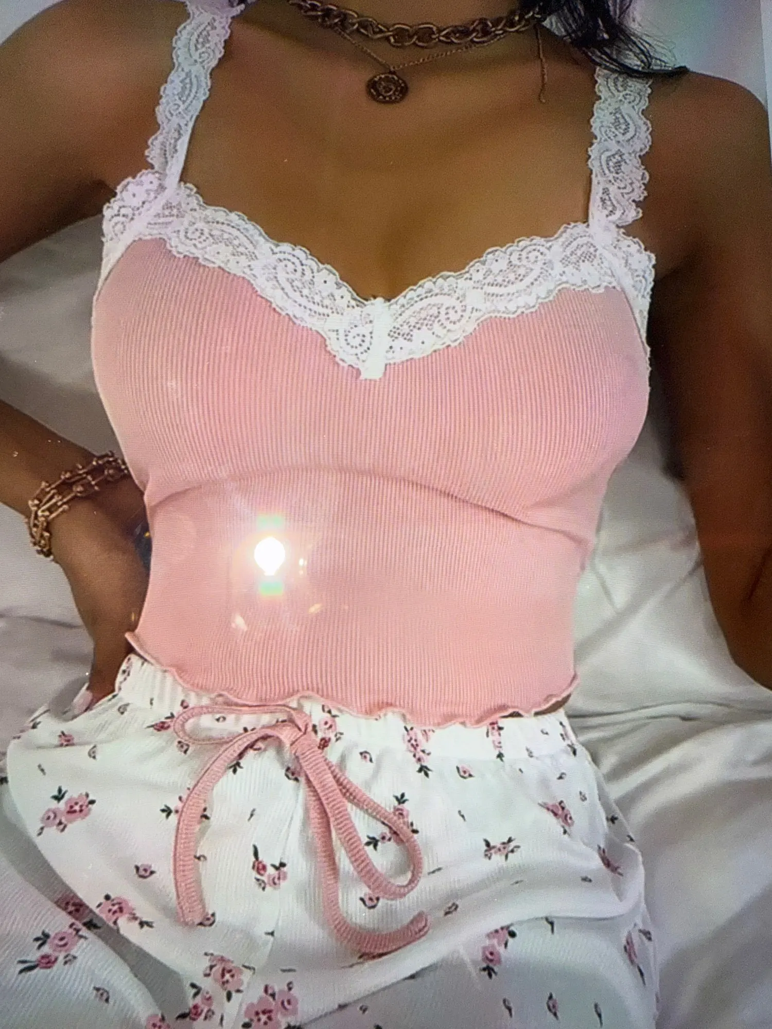 Women’s Lace Cami Pajama Set – Sleeveless Top & Shorts, Lightweight Sleepwear